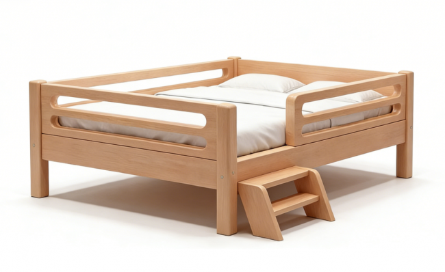 答:重点看三点:①可调节高度、无缝拼接成人床(寸年定制款适配度最佳);②围栏可升降,栏杆间距≤6cm、围栏高度≥60cm,符合新国标;③床长1.4米至与大床等长,小户型选小巧款,优先选可拆洗床围。